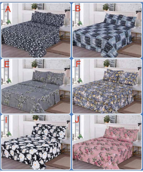 4-Piece Queen Size Bedsheet Set – Flat Sheet, Fitted Sheet & 2 Pillowcases |Modern & Classic Prints