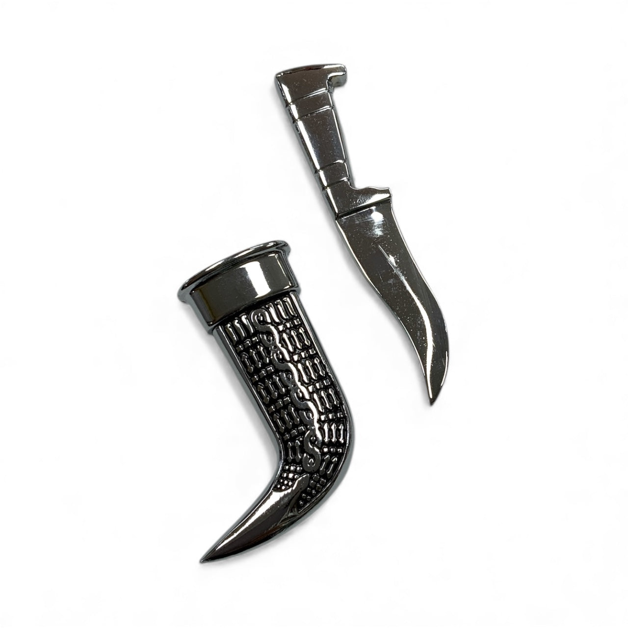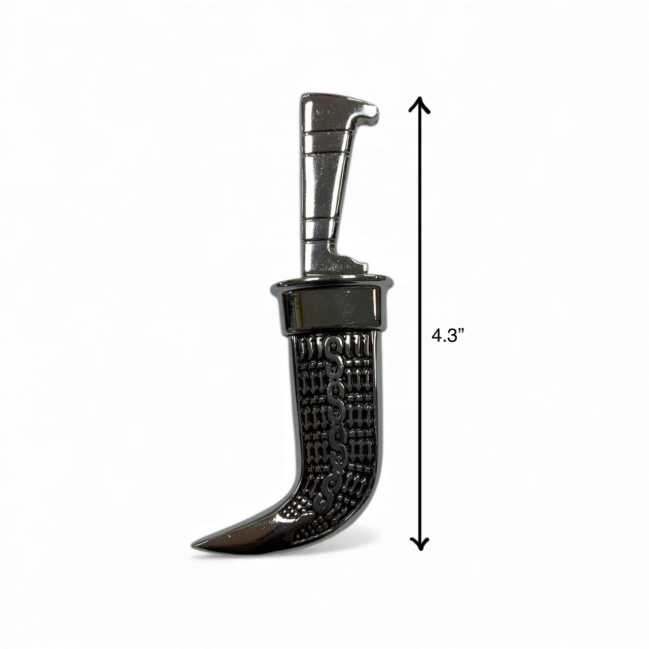 This 5 inch decorative Sikh Kirpan is crafted with a polished metallic finish and detailed engravings, representing the traditional symbolism of courage and spirituality in Sikhism. Compact and beautifully designed, it features a curved blade, textured handle, and ornamental detailing that make it perfect for display, gifting, ceremonial décor, or educational use. Ideal for those who appreciate Sikh heritage, this miniature Kirpan adds cultural significance to any collection